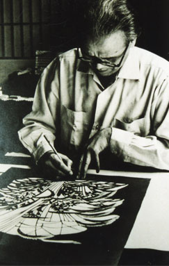 昭和24年京都市美術大学講師となり後に教授となりました。 その後も多くの展覧会で受賞を重ね昭和37年3月、型絵染により重要無形文化財 (人間国宝)の認定を受けました。